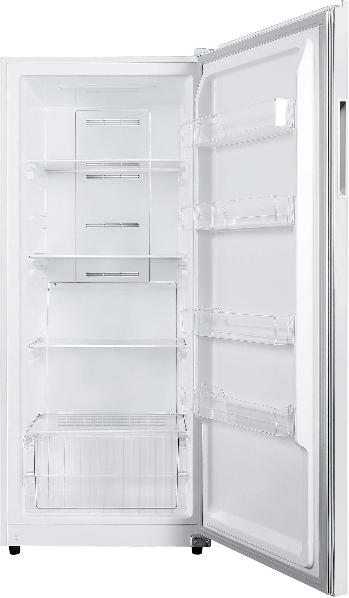 Maximize your cold storage flexibility with the Danby 14 cu. ft. Frost Free Convertible Upright Freezer. Designed to meet your evolving refrigeration needs, this large-capacity unit easily switches between freezer and refrigerator modes. Its frost-free operation and convection-freeze system ensure consistent, ice-free cooling, while the digital thermostat with fast freeze function and door ajar alarm adds convenience and peace of mind. With full-width glass shelves, a crisper drawer, and LED interior lighting, organizing and accessing your food has never been easier. ENERGY STAR® certified and garage ready, this model is built for performance and efficiency in any environment.