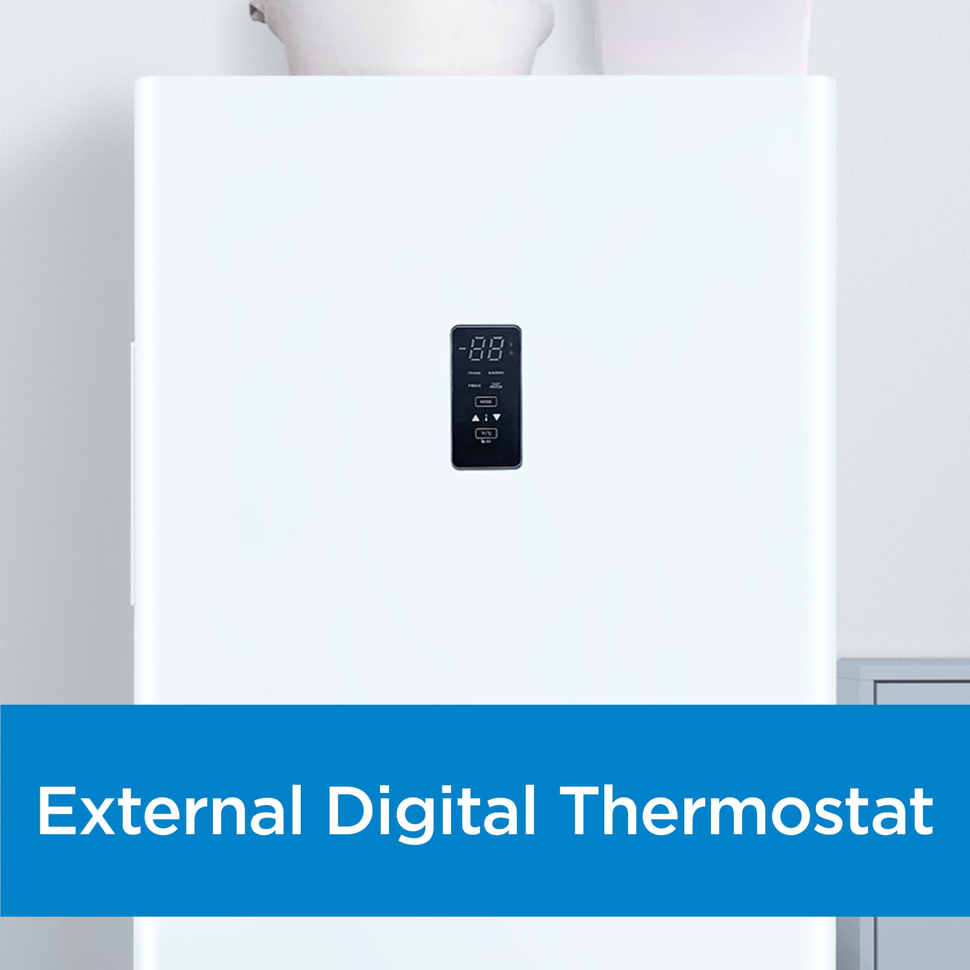 - External Digital Thermostat: Convenient control panel with fast freeze function and door ajar alarm