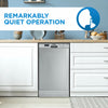 This Danby's 18" ENERGY STAR® compliant dishwasher is here to take the burden of dirty dishes off your hands, especially in small living spaces. With its compact size and sleek stainless steel design, this built-in dishwasher adds both functionality and style to your kitchen. Equipped with a spacious interior, it can hold up to ten place settings and includes a silverware basket for organized cleaning.