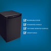 Perfectly sized for small spaces, the Danby 2.6 cu.ft. Black Compact Fridge offers efficient cooling with sleek, space-saving design. Whether placed on a countertop, in a dorm, or under a desk, this compact all-fridge provides ample storage with 2 full-width and one half-width wire shelf, tall bottle storage, and Danby’s second-generation CanStor® beverage dispensing system. The scratch-resistant worktop adds convenience for storing accessories, while the smooth back and reversible door design make installation effortless. ENERGY STAR® certified and built with R600a refrigerant, this model combines eco-friendly performance with practicality. Comes with 18 months of parts and labor coverage for added peace of mind.