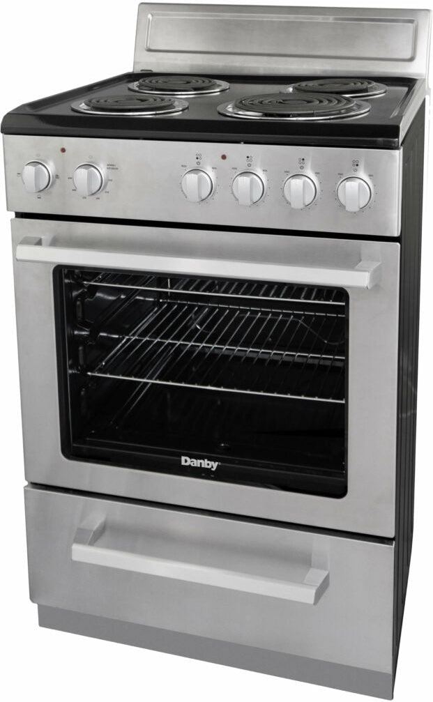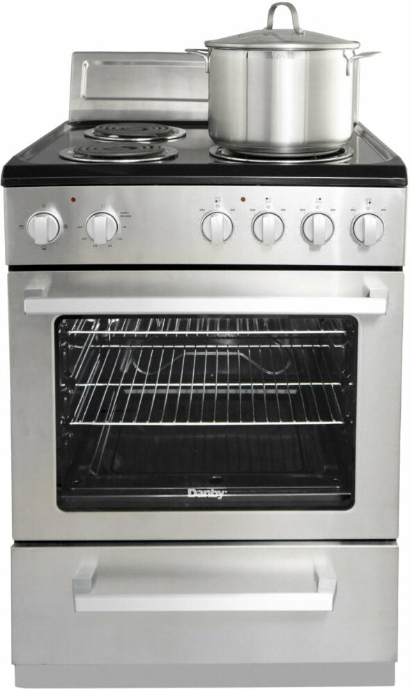 Prepare exquisite meals for yourself or your entire family with the help of this 24" electric range from Danby. Designed with both functionality and style in mind, this range is available in a sleek stainless steel finish, making it a perfect fit for condos, apartments, or townhouses. With 2.5 cubic feet of oven space and four burners, you have plenty of room to cook your favorite dishes to perfection.