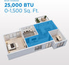 - 25,000 BTU’s cools space up to 1,500 square feet