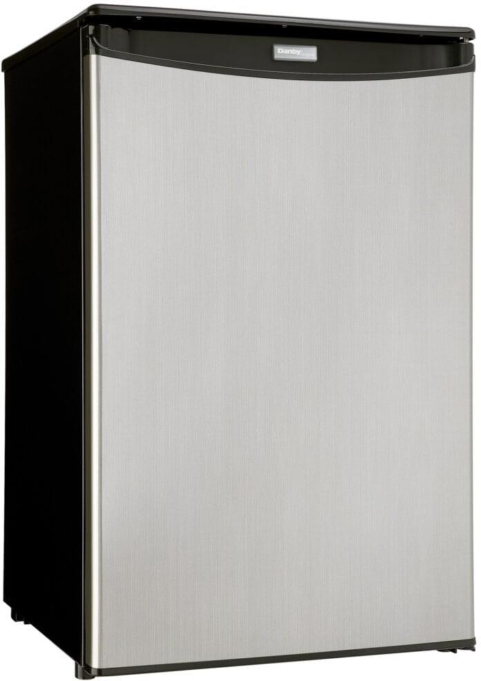 Experience convenience and compact storage with the Danby 4.4 cu.ft. Stainless Steel Compact Fridge. Perfect for offices, basements, dorms, or entertainment spaces, this ENERGY STAR® certified refrigerator delivers efficient cooling without compromising on performance. With a spotless stainless steel door, scratch-resistant worktop, and sleek integrated handle, it blends seamlessly into any modern setting. Inside, you'll find three full-width adjustable glass shelves, a 5-bottle wine rack, integrated door shelving with tall bottle storage, and a vegetable crisper. The CanStor® beverage system, interior light, and reversible door hinge add the finishing touches to this versatile and energy-efficient appliance.