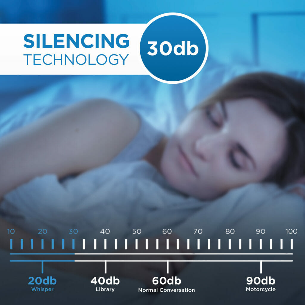 - Silencer Technology: operates as low as 30dB (low fan speed).