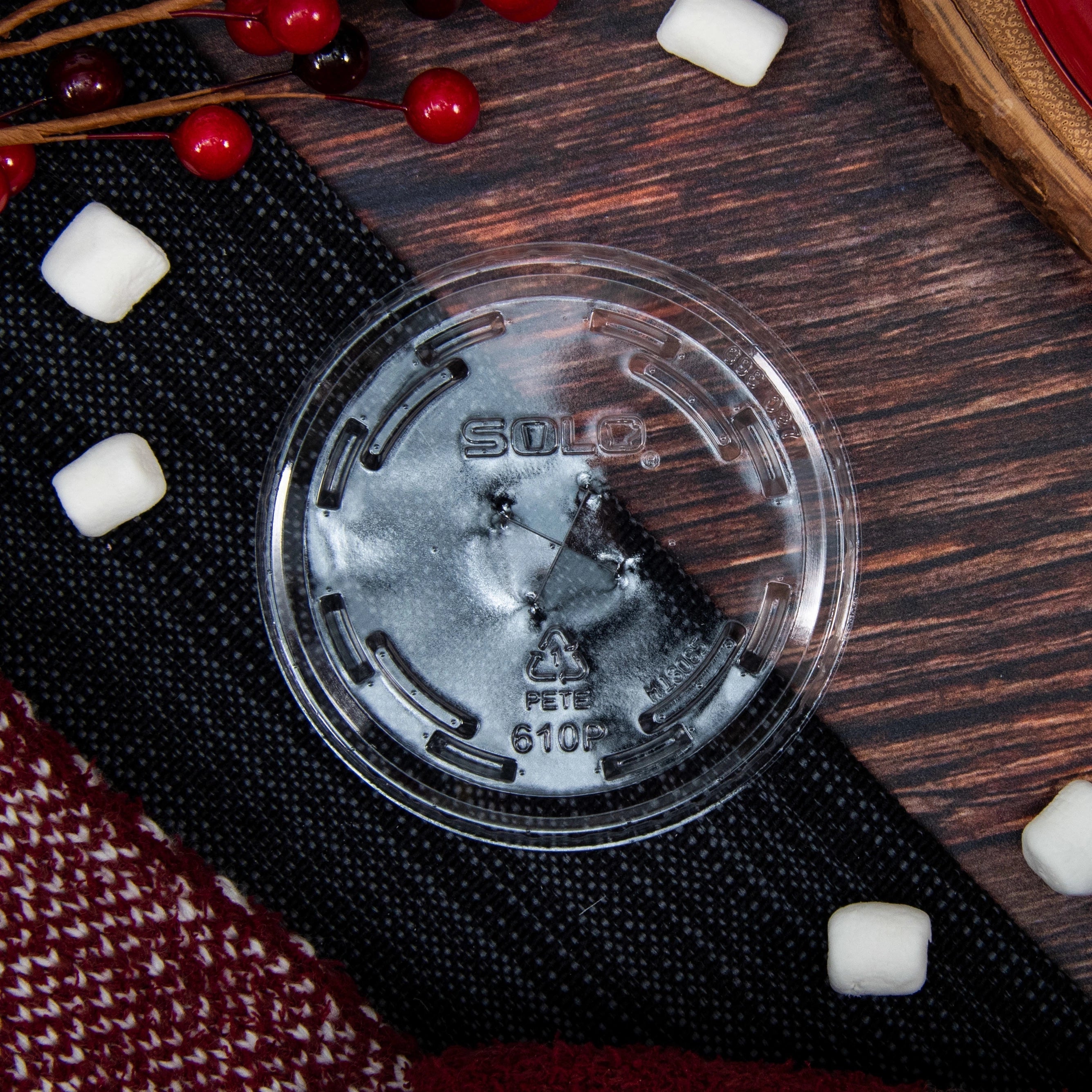 The clear design of the lids allows your customers to easily see the contents of their cups, making it convenient for quick identification of beverages. The transparency also adds a visual appeal to your drink presentation, enhancing the overall aesthetic. These lids feature a small hole in the center, which allows for the insertion of a straw or a stirrer. The hole is strategically placed to prevent spills and leaks while providing easy access for sipping or stirring the beverage.