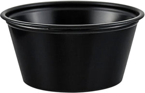 Dart Container's 2 oz Solo Souffles Black Plastic Portion Cups, a versatile and practical choice for your portioning needs. This case contains 250 cups, ensuring you have an ample supply for various applications. Designed with convenience and functionality in mind, these plastic portion cups offer a reliable solution for measuring and serving precise quantities. The 2 oz capacity makes them perfect for condiments, dressings, sauces, or any small portions you need to serve. Whether you're hosting a party, running a food service establishment, or enjoying a picnic, these cups provide a convenient and efficient portioning option. The black color of these portion cups adds a sleek and stylish touch to your food presentation. They effortlessly complement any table setting, making them suitable for both casual and formal occasions. The rich black color adds an element of sophistication and enhances the visual appeal of your dishes.