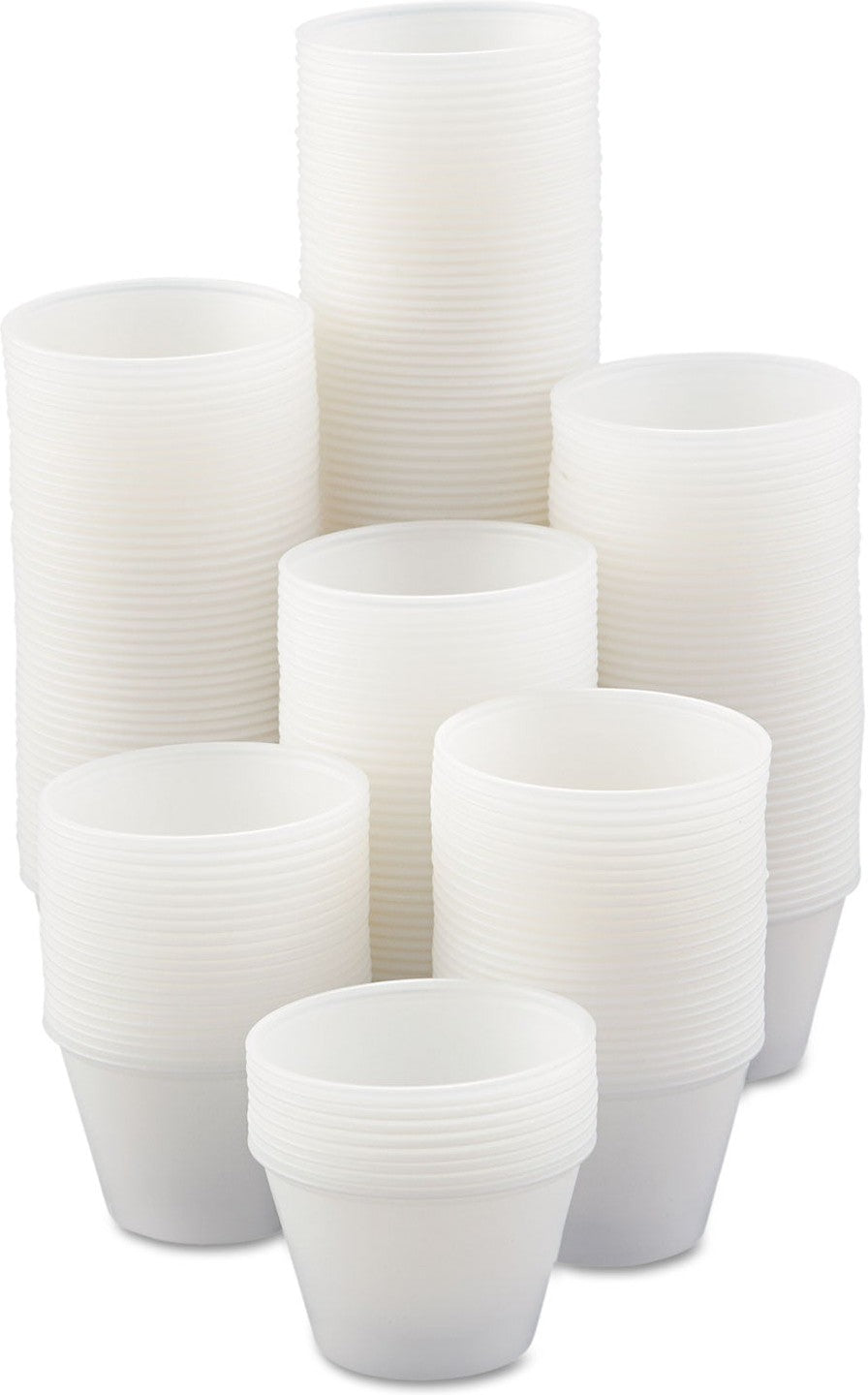 Dart Container's 5.5 oz Solo Souffles Translucent Plastic Portion Cups, a versatile and practical choice for your portioning needs. This case contains 2500 cups, ensuring you have an ample supply for various applications. Designed with convenience and functionality in mind, these plastic portion cups offer a reliable solution for measuring and serving precise quantities. The 5.5 oz capacity makes them ideal for condiments, dressings, sauces, or any small portions you need to serve. Whether you're hosting a party, running a food service establishment, or enjoying a picnic, these cups provide a convenient and efficient portioning option. The translucent design of these portion cups allows for easy identification of the contents, making it simple to distinguish between different sauces or condiments. The clear plastic construction also allows your customers or guests to see the portioned items, enhancing the visual appeal of your food presentation.