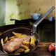 Heavy quality iron frying pan ideal for searing, grilling and browning meat, fish, and eggs. Lyonnaise skirt enables food to easily slide onto a plate. Thick heavy quality iron: heats up quickly with uniform heat distribution. Reaches high temperatures: enables the Maillard reaction and caramelization of juices. Natural non-stick properties: gradual seasoning of the pan, the more it is used the less the seasoning attaches to the food. Riveted iron handle: unbreakable. French-style curvature: easy handling and ergonomic grip. Heat the pan well before cooking. Seasoning necessary before using for the first time. Care: deglaze, rinse with warm water, dry and oil lightly. Store in a dry place. Do not use detergents or put in the dishwasher. Suitable for all cook tops including induction.