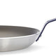 What truly sets this pan apart is its advanced 5-layer coating, which not only makes it highly resistant to intensive use but also provides exceptional non-stick properties. Say goodbye to stuck-on food and enjoy easy cooking and cleaning with this remarkable pan. The pan features a riveted iron handle with a classic French-style curve and an epoxy blue color. This design not only adds a touch of elegance but also complies with HACCP guidelines, limiting health risks in a professional kitchen. The blue handle also serves as a practical way to identify the pan's purpose, often associated with fish dishes.
