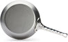 For comfortable and ergonomic handling, the fry pan features a riveted cast stainless steel handle curved in a traditional French style. This handle not only adds to the pan's aesthetic appeal but also provides ease of use in the kitchen. To make the most of this culinary masterpiece, it's recommended to preheat the pan with a small amount of fat before cooking.
