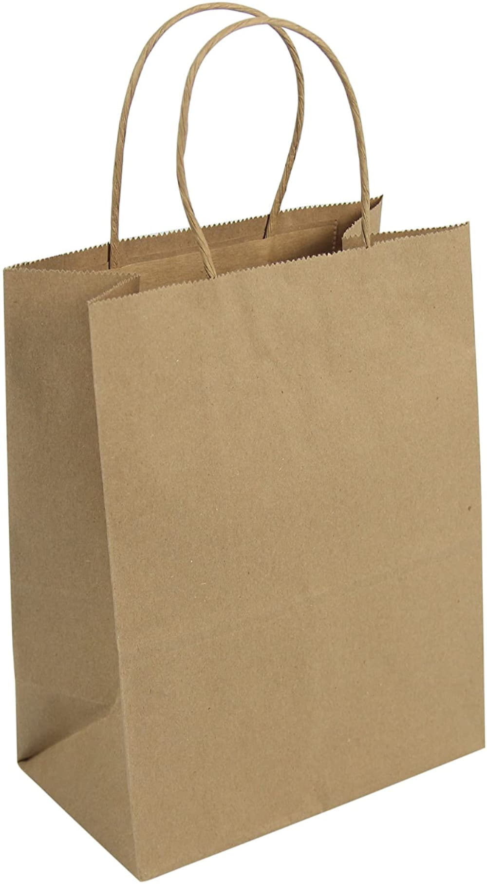 The dimensions of these bags make them versatile for various retail items, from clothing and accessories to gifts, books, or specialty products. The ample size strikes a balance between space and sleekness, accommodating a range of items while maintaining a polished and tailored appearance. The durable construction of the brown paper ensures that these shopping bags withstand the rigors of handling and transportation. The sturdy material minimizes the risk of tearing or damage, guaranteeing that customers' purchases are safely enclosed and protected throughout their journey.