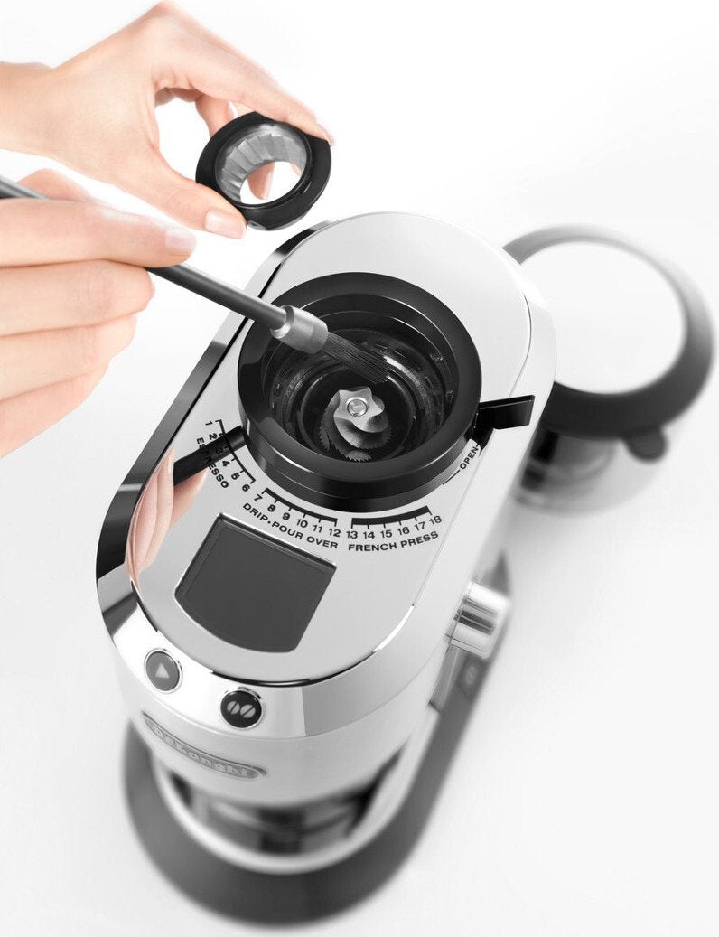 DeLonghi - Dedica Stainless Steel Conical Burr Digital 12 Oz Grinder with 18 Grind Settings and Portafilter Adaptor - KG521M