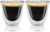 These hand-made glasses are the perfect gift for the espresso/coffee connoisseur, and will add to the experience. The double wall allows you to hold the glass comfortably in your hand, and since it's thermal it even keeps your beverage hot. Each box contains two latte glasses, two cappuccino glasses and two espresso glasses.