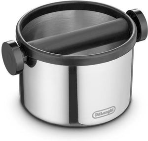 The De'Longhi Stainless Steel Knock Box helps you knock out the most tightly packed coffee grounds for easy mess-free cleaning. Simply tap your portafilter (coffee group filter handle) onto the Knock Box to release your coffee grinds out of the filter holder.