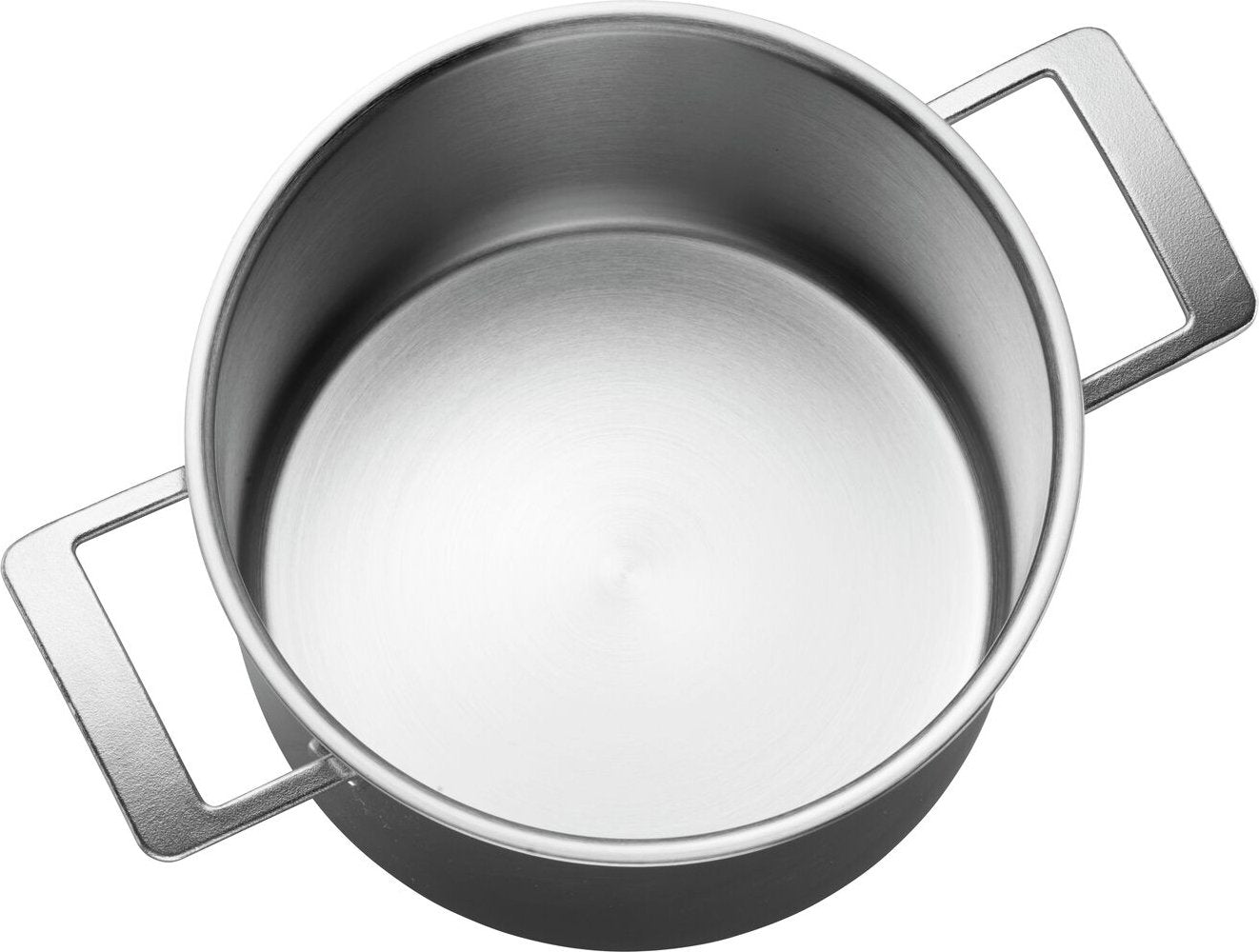 The Industry series is designed to meet the demands of discerning professional and home chefs alike. Strengthened by over a century of stainless steel expertise, this exceptional line features impressive engineering, unsurpassed quality, and stylish design. Fabricated from layers of aluminum and stainless steel, including a thick aluminum core, this premium cookware boasts superior heat conduction, retention, and distribution for perfect browning, searing, and frying. Along with Demeyere’s signature flat base technology—which ensures no hot spots—even cooking is guaranteed every time. Dripless pouring rims and stay-cool, ergonomic handles make it a pleasure to cook with these pots and pans. The revolutionary Silvinox® surface treatment maintains a flawless, silvery white finish that looks like new even after years of use.