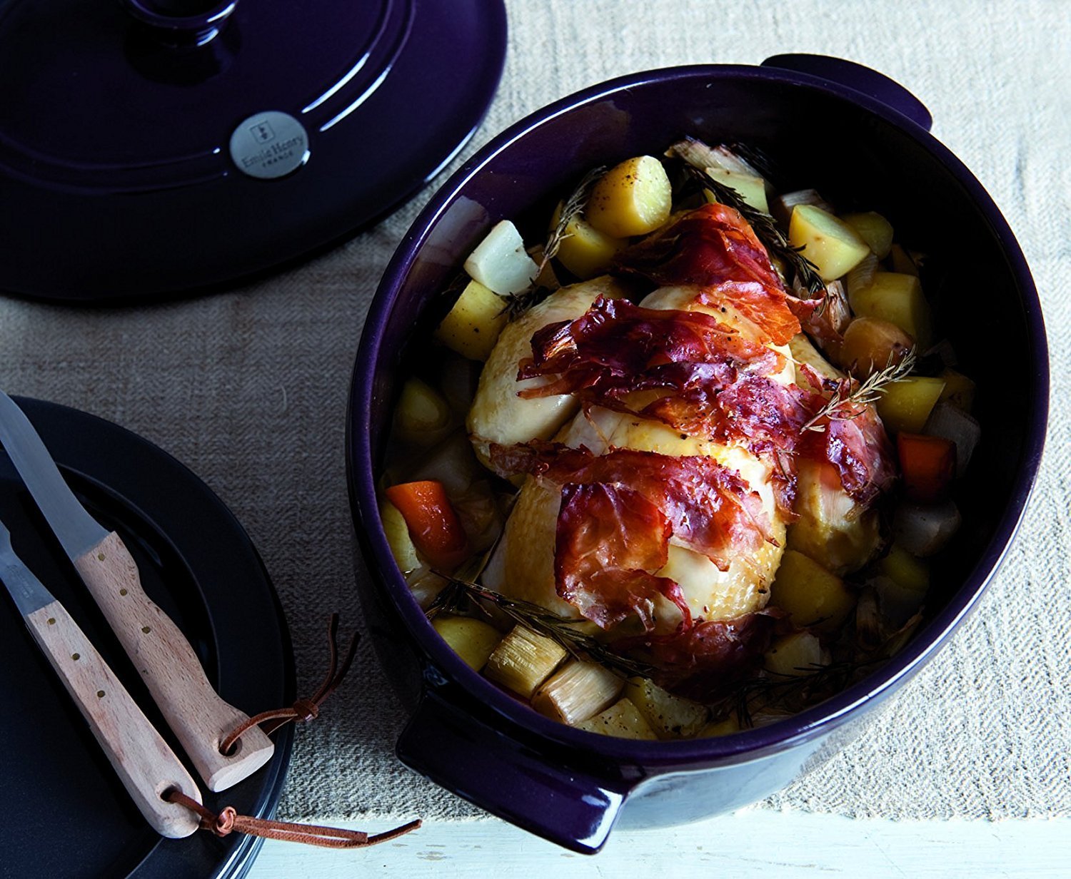 Burgundy clay evenly & slowly diffuses cooking heat so the food is cooked evenly, which brings out the flavours & aromas. This clay has superior heat-retention properties to keep food hot & more flavoursome when resting. All Emile Henry products are direct freezer-to-oven. They exhibit extraordinary thermal shock properties & go under the broiler & in the microwave.