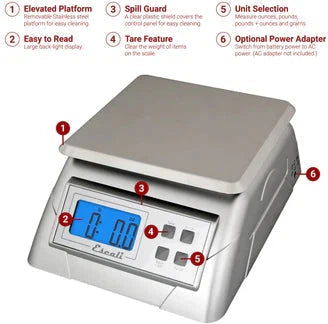 The Escali Alimento Digital Scale is equipped with a highly accurate, durable sensor which is perfect for kitchen, office and laboratory use. The scale features an elevated stainless steel platform, a large back-light display and easy touch buttons.