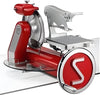 - Elegant Red Design: The eye-catching red finish of this manual meat slicer adds a stylish touch to any kitchen. Its sleek design not only enhances the aesthetic appeal but also makes it a standout piece of equipment. The vibrant color signifies quality and attention to detail, reflecting the superior craftsmanship of the Eurodib brand.