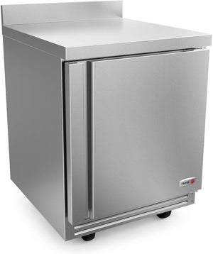 The Fagor FWR Series 115V 9.5 ft. Single Door Worktop Freezer is an essential addition to any commercial kitchen seeking reliable freezing capabilities within a compact footprint. Its single-door design maximizes storage space while conserving valuable kitchen real estate. The integrated worktop provides a convenient surface for food preparation, optimizing workspace efficiency. Built with a heavy-duty stainless steel exterior, this freezer is designed to withstand the demands of busy kitchen environments, ensuring longevity and ease of cleaning. Inside, the stainless steel construction maintains high hygiene standards, facilitating straightforward maintenance. Equipped with digital temperature control, precise regulation of freezing conditions is achievable, ensuring the preservation of frozen goods at optimal temperatures. With its 115V operation, installation is simplified, requiring standard electrical outlets without the need for special wiring. Designed with energy efficiency in mind, this freezer helps to minimize operating costs while delivering reliable performance. Certified to meet commercial standards such as NSF and UL, the Fagor FWR Series 115V 9.5 ft. Single Door Worktop Freezer is a dependable choice for restaurants, cafes, delis, and other food service establishments seeking efficient freezing solutions without compromising on space or quality.