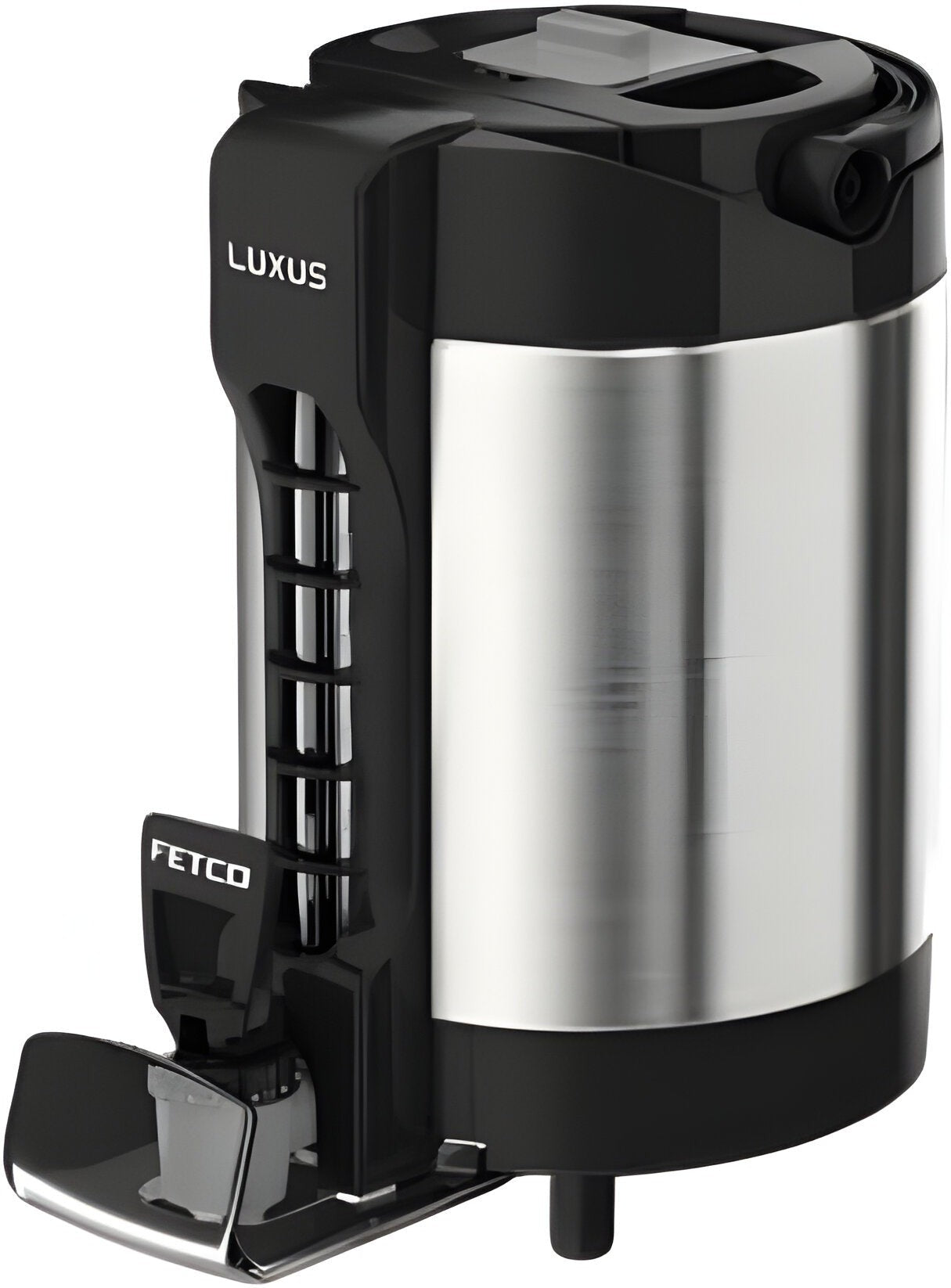 The Fetco LGS-10 LUXUS® 1 Gallon Sight Gauge Server is a sophisticated self-serve beverage dispenser designed for a variety of settings, including hotel lobbies, breakrooms, office coffee services, and convenience stores. This dispenser provides an ideal solution for locations with limited countertop space and low to moderate beverage volume needs, combining functionality with an elegant design. This model features a secure brew cap that snaps firmly into place, ensuring that beverages remain fresh and secure. The Sure-Grip textured sides facilitate easy stem removal; users can simply move the handle forward, automatically lifting the stem for effortless access to the contents. Designed for convenience, the LGS-10 offers direct access to the brew cap and funnel without requiring lid removal, which helps retain heat and moisture, preserving beverage quality. The top-mounted handle simplifies cleaning and maintenance, making it user-friendly. Compatibility with the A147 single stand, A148 twin stand, or A149 triple stand allows for flexible serving options to suit your specific needs. The interior boasts a high-quality stainless-steel vacuum liner, providing exceptional insulation for optimal heat retention, freshness, and flavor. The durable stainless steel outer construction not only adds a touch of elegance but also withstands the demands of daily use, cleaning, and transportation. With an integrated stand for immediate service readiness, there’s no need to search for a separate serving station. The removable 2-piece drip tray allows for thorough sanitation, while the transparent faucet guard prevents cross-contamination by keeping container openings away from the spout. This model is compatible with CBS-2130XTS and CBS-2140 series brewers for direct brewing.