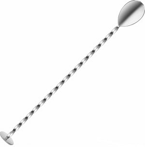This cocktail mixing spoon is commonly used by bartenders for mixing and layering cocktails. Reaching almost 11 inches long, its length ensures you can reach to the bottom of the tallest pitcher, tumbler or shaker to evenly mix ingredients. The long twisted 4 mm thick stem can be used to layer drinks and also features a flat end for crushing ingredients.