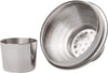 - Thick glass base with brushed stainless steel lid