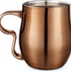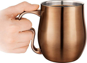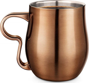 Enjoy long-lasting hot coffee in style with this double-wall stainless steel Curvy Cup. The double-wall construction provides superior insulation, enables hot beverages to stay hot longer and the exterior stays temperature-neutral; easy-to-handle. The contoured split-finger handle provides a secure grip & helps to prevent slips & spills. It is also designed to accommodate large or small hand sizes and the lower curve in handle cradles fingers for added support. Great for coffee, tea, or any other hot or cold beverages. This attractive cup is made from brushed stainless steel and features a solid-cast handle.