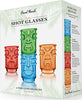 Serve up some tropical shots from these fun and stylish tiki glasses. Each of the 4 glasses is differently-designed to resemble 4 of the great Polynesian deities (gods). They stack cleverly together for compact totem pole storage.