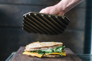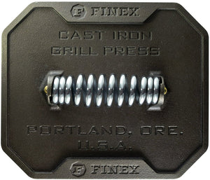 Over four pounds of heavy-gauge, pre-seasoned cast iron topped with our stainless steel spring handle. This grill press has famed ¼” tall grill ribs. Our thick cast iron retains and distributes heat better, delivering stronger searing and more even cooking on any heat source. The FINEX Grill Press delivers serious weight and premium cooking performance, no matter the heat source. Ideal for panini sandwiches, crispy vegetables or any food that requires a drier heat, the Grill Press leaves serious grill marks on anything it cooks.