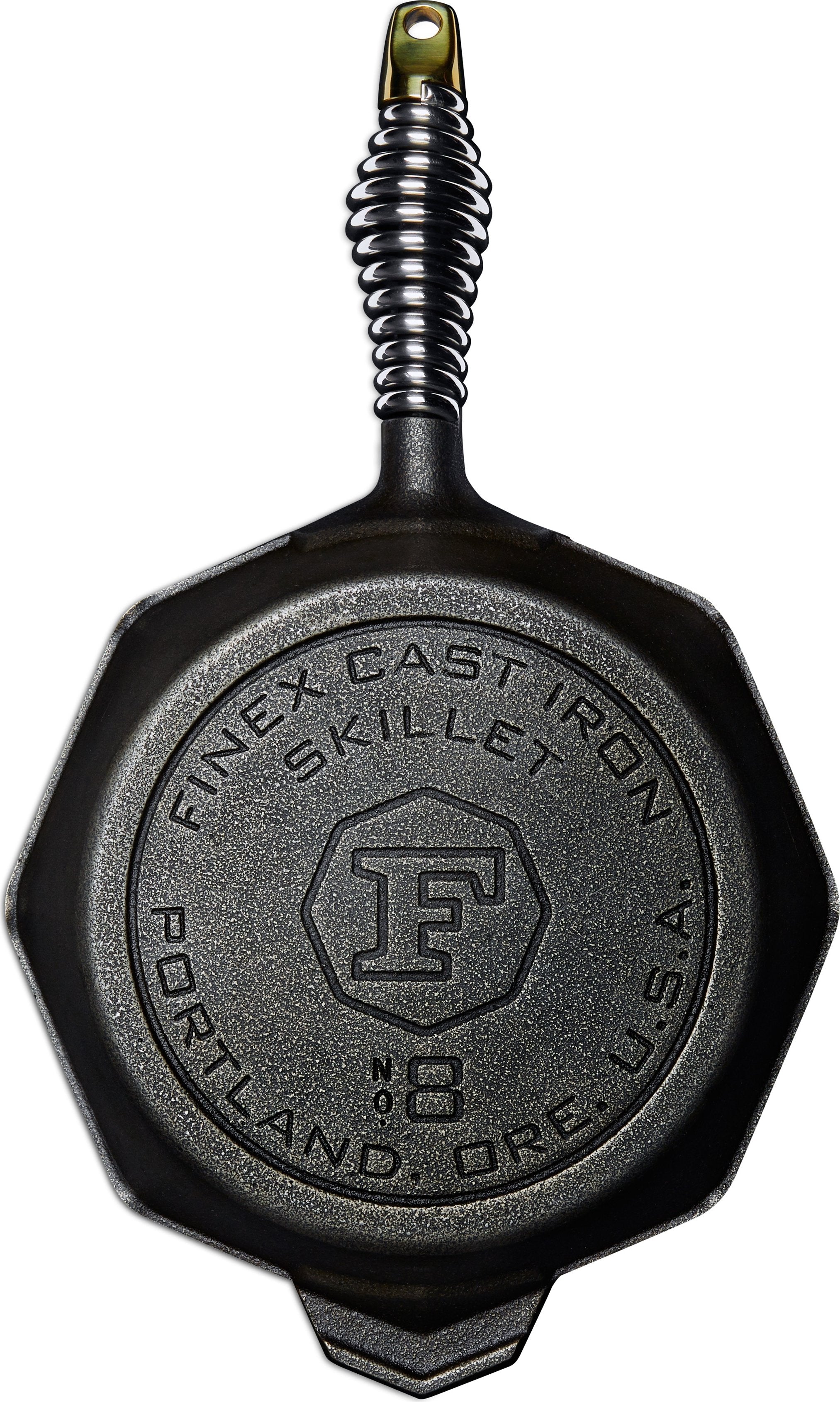 The most versatile pan you’ll ever own. The FINEX cast iron skillet is polished smooth for perfect eggs every time. It’s a searing machine for hearty steaks, chops and salmon. It’s brilliant for baking perfect cornbread, pies and cakes. Eight flat sides make it easier to get a spatula behind the crust on cornbread, pizza and other baked goods and make it easier to squeeze a couple skillets into a crowded oven. From stovetop, to oven, to grill—even over the coals—the FINEX cast iron skillet is a trusted essential you’ll pass down for generations. Wound from 300 series stainless steel rod stock and hand polished to high luster, our handles stay cool longer, cool off quicker and feel better in the hand. Inspired by vintage wood stove door handles, they bring high-end fit and finish to a time honored design. ready to cook right out of the box, each cast iron piece comes pre-seasoned with 100% organic flaxseed oil to a non-stick, rust resistant bronze finish that will patina, darken and continue to improve as you cook.