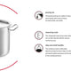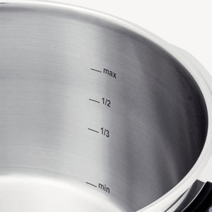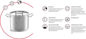 - Ergonomic Fissler Stay-Cool metal handles for a pleasant grip temperature