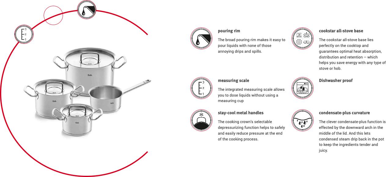 • Ergonomic Fissler Stay-Cool metal handles for a pleasant grip temperature
