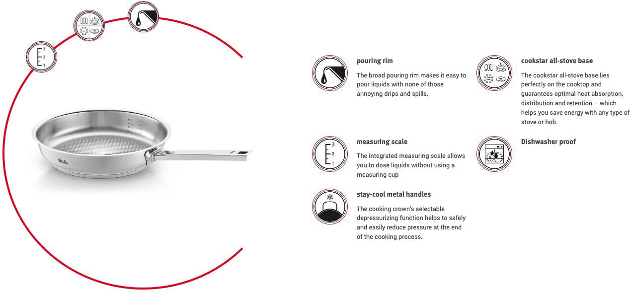 - Exclusive, energy efficient Fissler Cookstar base for optimal heat distribution
