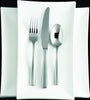 A clean, sculpted design with elegant curves and a traditional shape, perfect for your formal dinning room or your patio buffet. Set includes: 4 table forks, 4 salad/dessert forks, 4 table knives, 4 dessert/soup spoons and 4 coffee/tea spoons.