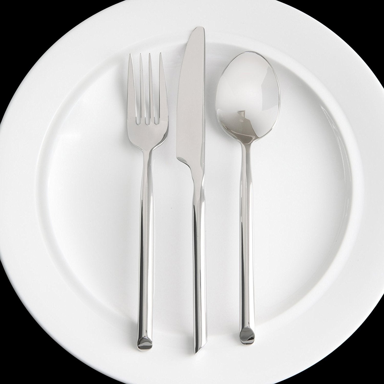 Delightfully modern and contemporary, Capri is stunning in its simplicity and memorable by design, crafted from heavy-gauge 18/10 stainless steel, the highest grade available for flatware. Set includes: espresso spoon, a desert/soup spoon, a table fork, a salad fork and a table knife.