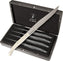 Complete your flatware collection with matching or contrasting steak knives. Fortessa steak knives are found in the upper end steak and chop houses throughout America. Restaurant durability and elegantly designed, this style compliments your table at an everyday price. Fortessa steak knives are high-quality and are made of fine 18/0 stainless steel. If you are a beef eater, you will love having the Fortessa restaurant-quality steak knife. Set includes: 4 serrated steak knives with blonde handles.