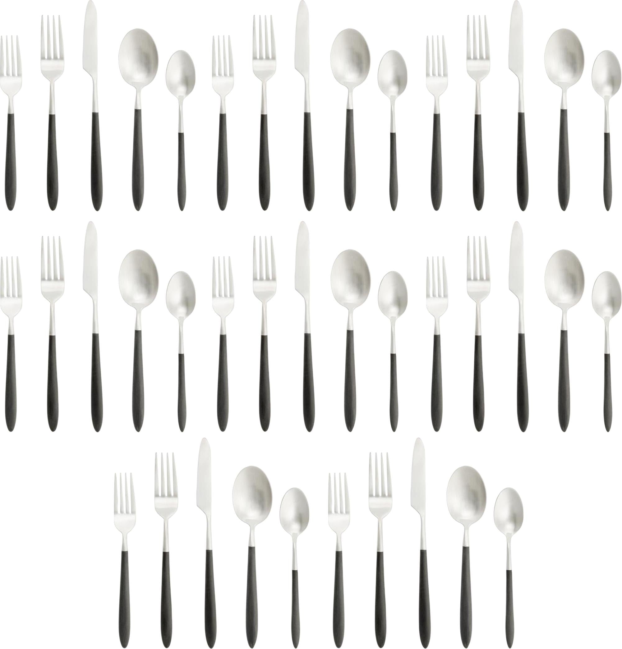 Fortessa - Velo 40 Pc Black/Brushed Flatware Set - 40PPS-114BR6B-05