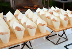 Introducing the Front of the House - 3.5 oz Servewise Cone 200/Pack, the perfect guilt-free disposable serving solution for all your event needs. Crafted with care by FOH, Servewise combines eco-smart design with chic style, offering a sustainable and affordable option for serving appetizers, desserts, and more. Made from highly renewable woods, these cones are not only biodegradable and compostable but also natural and organic, ensuring that your event leaves a minimal environmental footprint. Each pack contains 200 Servewise cones, providing ample servings for all your guests. Whether you're hosting a small gathering or a large-scale event, these cones offer convenience and practicality, allowing you to serve a wide range of menu items with ease.