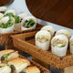 The natural and organic design of Servewise slanted cups adds a touch of high-end luxury to any occasion, elevating the presentation of your culinary offerings. Whether you're serving cocktails, mocktails, or delectable desserts, these cups provide a stylish and modern serving option that is sure to impress your guests. With a capacity of 3 ounces, these cups are perfect for serving a variety of beverages and desserts. Whether you're offering guests a refreshing sip of iced tea, a tantalizing taste of a signature cocktail, or a delightful sampling of a decadent dessert, these cups provide ample space for your guests to enjoy their favorite treats. In addition to their elegant design, Servewise slanted cups are also disposable, making clean-up a breeze. Simply use them once and then dispose of them responsibly, knowing that they will biodegrade naturally over time, leaving behind no harmful impact on the environment.