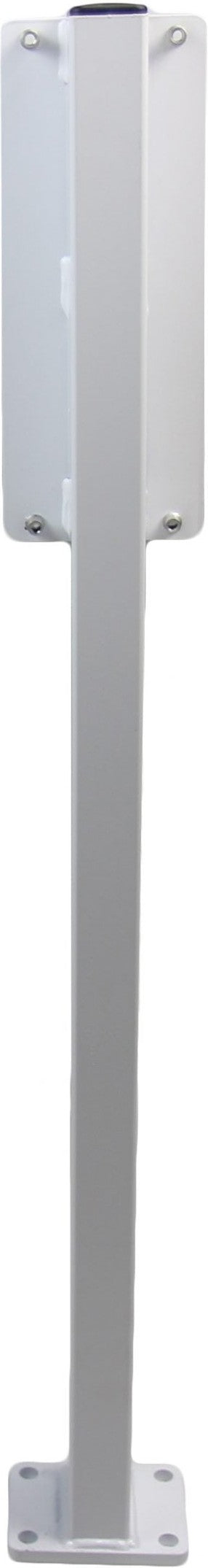 - Dimensions and Finish: The carrier stand is crafted from 1-1/2″ x 3″ x 1/8” thick cold-rolled steel tubing, while the floor mounting plate is made from 3/8″ cold-rolled steel plate. The entire unit is finished with a white epoxy powder coating, combining durability with an aesthetically pleasing appearance.