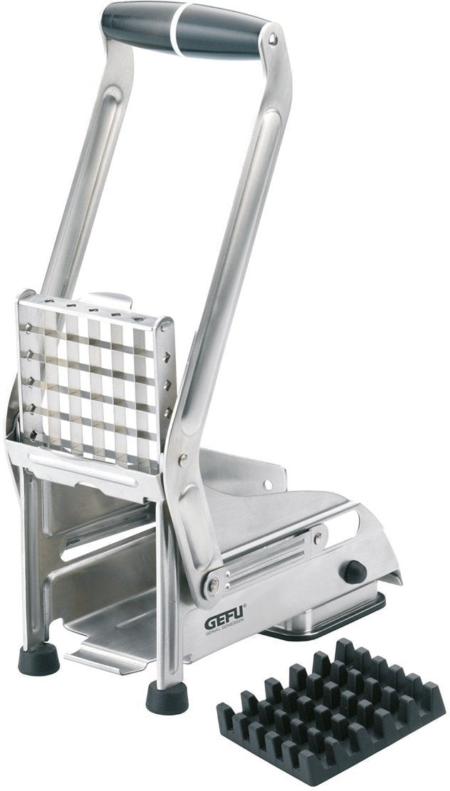 Robust stainless steel cutter with an interchangeable blade for cutting strips of different vegetables. Sharpened stainless steel blade for 36 quick strips (12 x 12 mm) of healthy potatoes or other vegetables. The stable design with vacuum suction foot ensures a very good grip on smooth surfaces and handling is very simple.