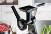 Using the multifunctional meat grinder, meat and vegetables are easy to grind with little effort. Sophisticated engineering, including the special design of the conveyor screw, the self-grinding knife or the interior thread ensure perfect results. The supplied sausage stuffer makes it easy to fill cannelloni and the spritz biscuit attachment gives cookie dough the perfect shape. A safe stand is guaranteed by the suction foot or the table clamp which can be fixed to worktops up to 8 cm thick. The pusher ensures every last scrap of material is processed and serves to fasten and loosen the meat mincer’s lock nut.