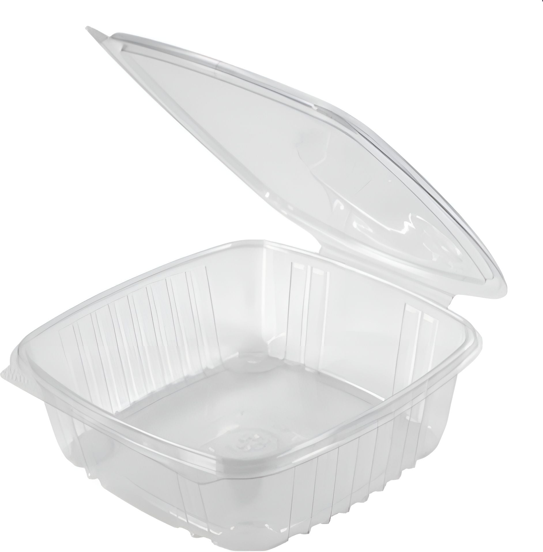 The Genpak Clear 48 oz Plastic Hinged Container in the size of 8" x 8.5" x 2.5" is a reliable and environmentally conscious choice for deli and food storage needs. The Genpak Clear 48 oz Plastic Hinged Container is a versatile and eco-friendly solution for your deli and food storage requirements. With its dimensions of 8" x 8.5" x 2.5", this container is designed to hold 48 ounces of food contents, making it perfect for larger food portions or family-sized items.Made with APET (amorphous polyethylene terephthalate) material, this container ensures clarity and durability, allowing customers to easily see the contents inside. The clear color enhances the presentation of your deli items, creating an appealing display for your customers. This container is made with 30% post-consumer recycled content, demonstrating its commitment to sustainability and reducing environmental impact. By using recycled materials, it contributes to conserving natural resources and promoting a greener planet for future generations.