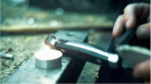 Gude knives are hand-forged in Solingen, Germany from one piece of chrome-vanadium-molybdenum steel, from the blade tip to the double crop. The double crop, a special feature of Gude knives, is a counterweight to the blade. The knife is perfectly balanced. The special mixture of steel and the elaborate manufacturing process with more than 30 manual steps give the stainless steel blades with a hardness of approx. 57 HRC a special robustness and longevity.