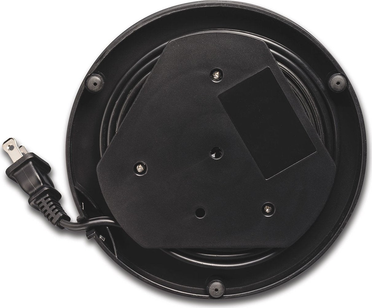 A convenient cord wrap below the base keeps the power cord neatly tucked away.
