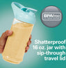 - 16 oz. Shatterproof Jar: The durable 16-ounce jar is shatterproof and comes with a sip-through travel lid, making it perfect for on-the-go consumption.