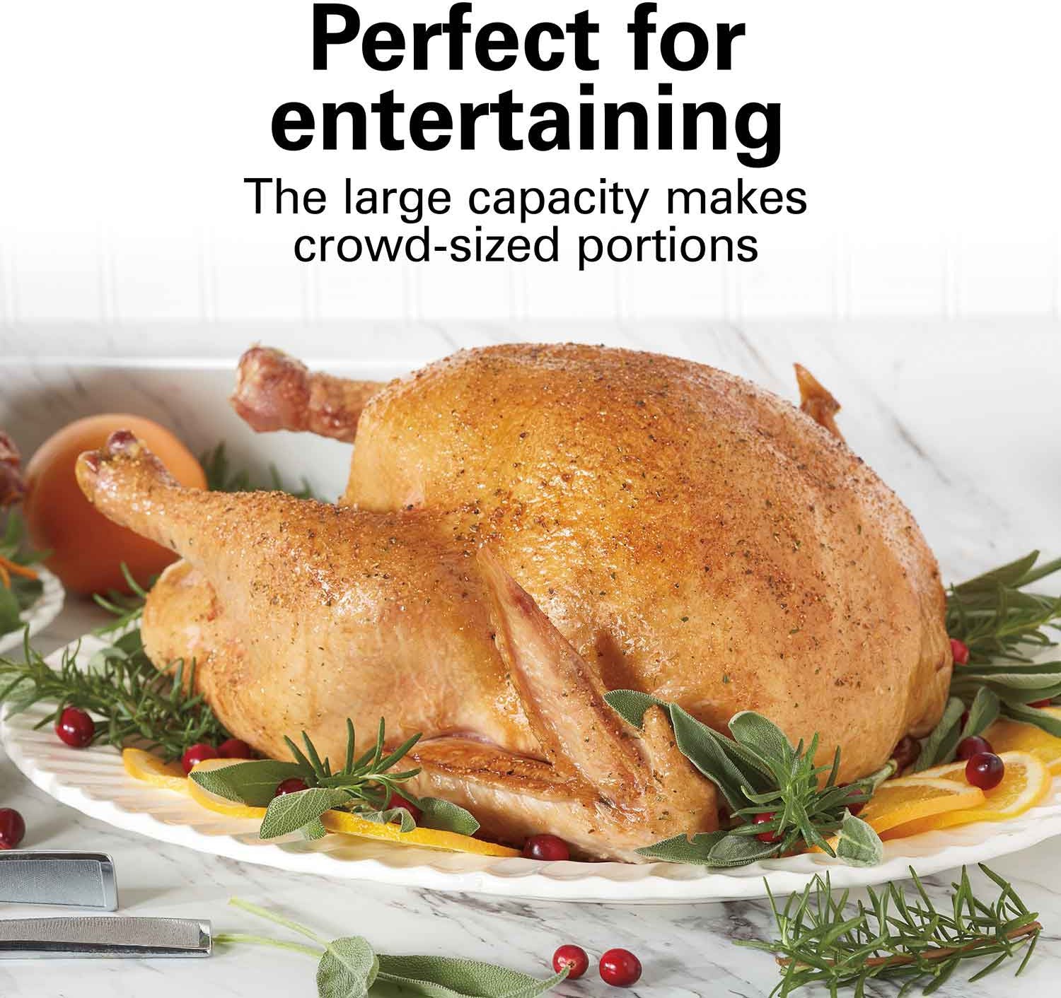 The Hamilton Beach 20 Quart Electric Roaster Oven is a versatile addition to your kitchen, perfect for holidays, parties, and special occasions where extra oven space is needed. With its 20-quart capacity, it doubles your oven space and allows you to cook large cuts of meat, bake, roast, steam vegetables, and even prepare desserts like cheesecake—all in one convenient appliance. Whether you're hosting a family dinner, holiday meal, or a festive gathering, the Hamilton Beach Electric Roaster Oven simplifies cooking while ensuring delicious results. Its large capacity and multifunctionality make it a versatile tool in any kitchen. The Hamilton Beach 20 Quart Electric Roaster Oven combines cooking versatility with ease of use and ample capacity, making it an essential appliance for anyone who loves to entertain or prepare large meals effortlessly.
