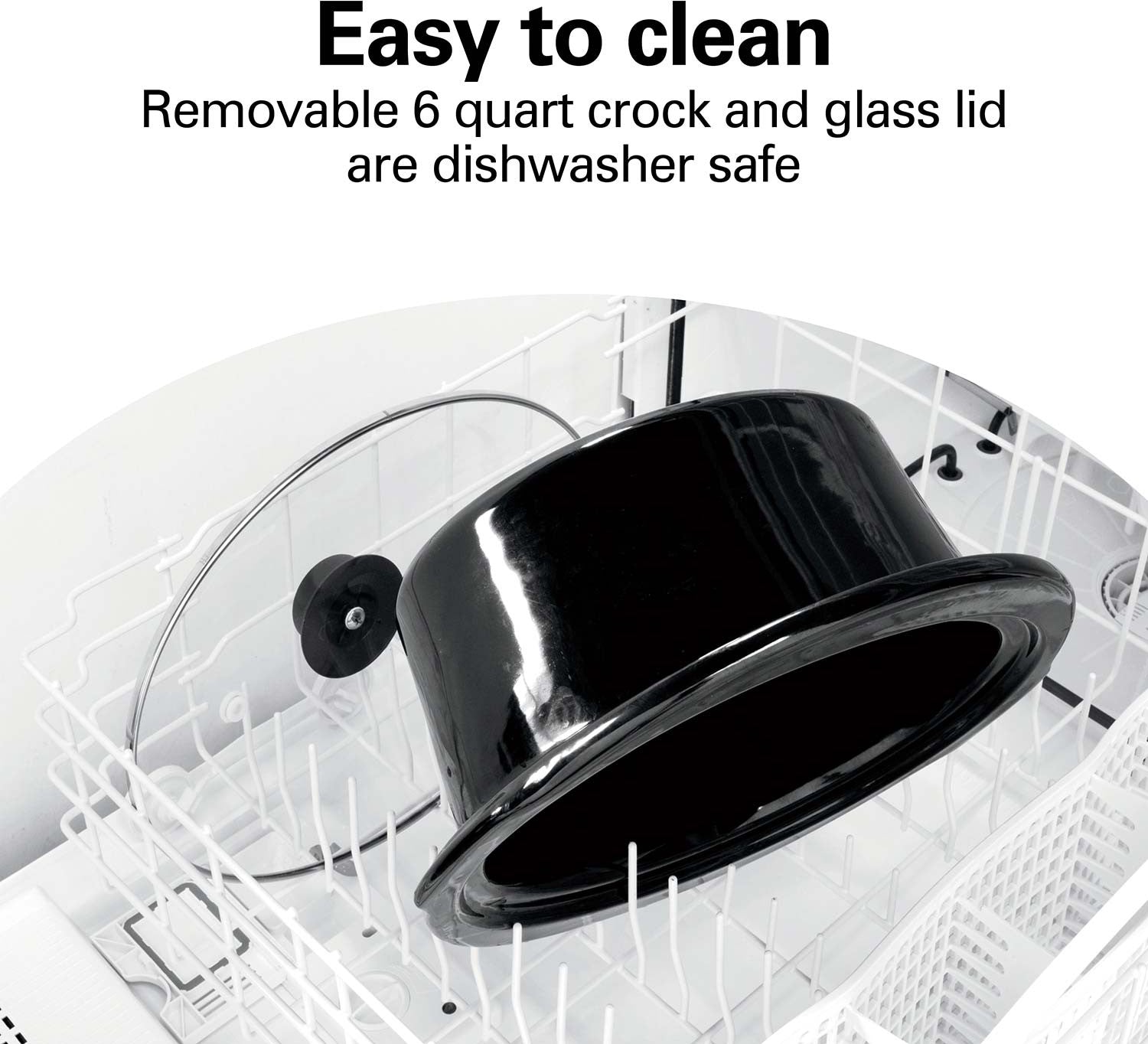 Easy to Clean: Cleanup is effortless with the removable 6 quart stoneware crock and glass lid, both of which are dishwasher safe.