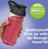- Durable Jar: Shatterproof 16 oz. jar with a sip-through travel lid ensures leakproof portability and convenience.