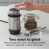 - Hands-Free Operation: Simply press the top of the grinder for hands-free operation; release to stop grinding. Alternatively, hold down the top to manually control the grind texture.